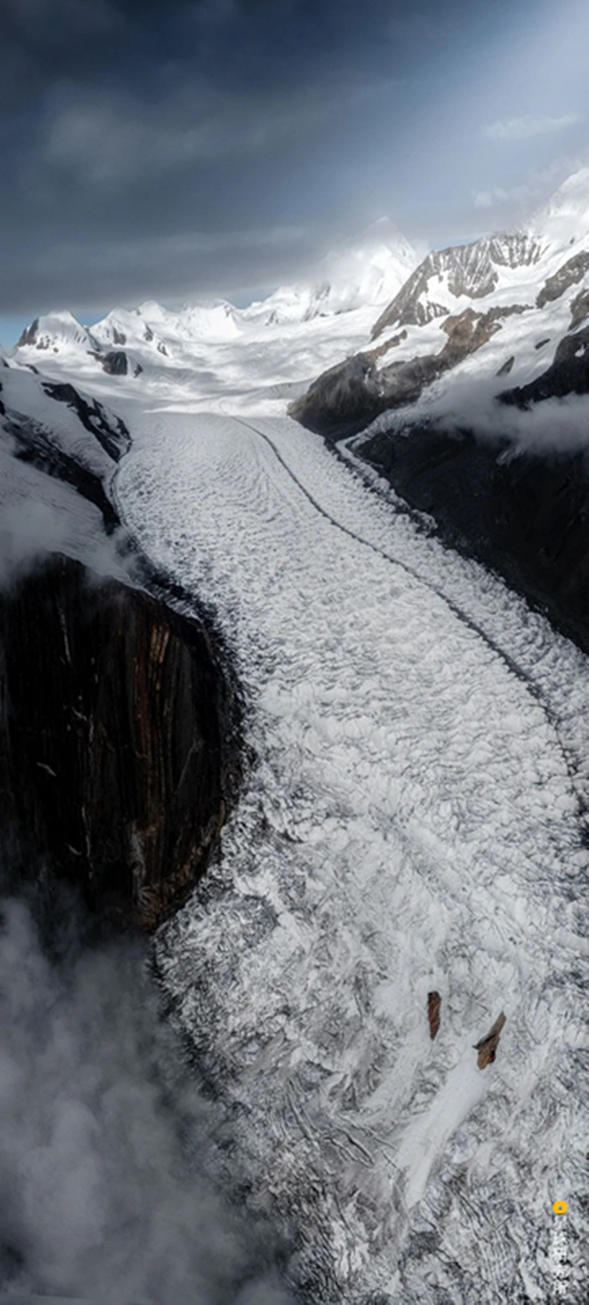 無(wú)論是在金色的草原、在蔚藍(lán)的湖畔,還是登上一座山,望向另一座山,整個(gè)甘孜有大約50座6000米以上的山峰,超過(guò)5000米的山峰更是高達(dá)600多座,是一個(gè)天然的雪山觀景臺(tái)。能誕生如此多的雪山,因?yàn)楦首伪揪驼驹诰奕说募绨蛑?,它屬于平均海拔超過(guò)4000米的青藏高原,且位于青藏高原東部最為險(xiǎn)峻的高山峽谷區(qū),兩條南北走向的山脈,大雪山和沙魯里山構(gòu)成甘孜的基本骨架,大雪山聳立在甘孜的東部,它從深切的大渡河與雅礱江河谷之間拔地而起格外險(xiǎn)峻,大雪山南部海拔7508.9米的貢嘎山一騎絕塵,成為整個(gè)橫斷山脈的制高點(diǎn),也是整個(gè)四川的制高點(diǎn),群峰聳峙的它是天生的主角。在它周圍,一條條冰川如綢帶、如彎刀、如洪流從山坡之上蜿蜒而下。