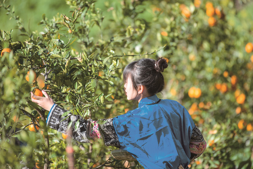 陽春三月,驅(qū)車百里,峰回路轉(zhuǎn),至一小鎮(zhèn),喚烏拉溪,為古驛站。背夫崖下,峻山環(huán)護(hù),小河繞村,屋舍散落,白墻灰瓦,綴以紅檐,桃花夭夭,棧道蜿蜒??图倚∨?,青衣嬌容,穿行花間,簪花比俏。昔日荒坡,綠樹成蔭,繁花之下,草莓豆莢,青果胡豆,蔓草芳苓。