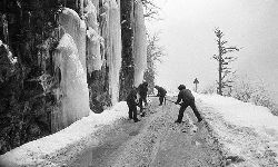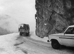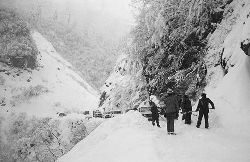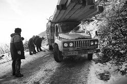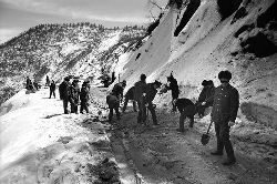 “二呀二郎山, 高呀高萬(wàn)丈, 古樹(shù)荒草遍山野, 巨石滿山崗。 康藏交通難行走, 康藏交通被它擋…… 五十年代初,《歌唱二郎山》傳遍中外,二郎山因此而聞名四海。歌詞也是昔日二郎山的真實(shí)寫(xiě)照?!?br />  一九九七年十一月二十四日,連續(xù)多日大雪,把整個(gè)二郎山裹得嚴(yán)嚴(yán)實(shí)實(shí),白茫茫一片。陣陣山風(fēng)吹過(guò),大霧就像瀑布一樣,從山頂直往下翻涌?jī)A瀉。 一大早,州交通局打冰除雪排險(xiǎn)的干部職工就從二郎山管理站直奔山埡口。載有防滑砂的大貨車穿迷霧,繞山梁,向山頂埡口疾馳。由于氣溫太低,霧又大,車上的擋風(fēng)玻璃很快就結(jié)下了冰,路面打滑非常嚴(yán)重。前面車輛堵了起來(lái),排險(xiǎn)人員只好下車步行。 大霧彌漫,能見(jiàn)度很底,陰霾的天空又飄起了紛紛揚(yáng)揚(yáng)的雪花,剌骨的寒風(fēng)陣陣襲來(lái),只聽(tīng)見(jiàn)車蓬布在風(fēng)中“嗶剝”作響,卻看不見(jiàn)前面到底堵了多少車。排險(xiǎn)人員只好相互攙扶踩著冰滑的邊路艱難地向行。好不容易來(lái)到堵在最前面的車子面前。原來(lái)是一輛載著原木的東風(fēng)牌大貨車側(cè)滑在公路上,把整個(gè)公路堵死了。 局領(lǐng)導(dǎo)當(dāng)即指揮大家用鋼釬、鐵鎬和鋤頭處理冰道,沒(méi)有撮箕,大家借來(lái)加水桶裝運(yùn)冰雪……氣溫仍在急劇下降,剛從雪堆里刨出來(lái)的路,又被結(jié)起一層冰,就像地面上澆上了油,這就是冰雪道上有名的“桐油凌”。 有二位老同志不顧年老體弱,積極參與打冰除雪,一個(gè)在打冰時(shí),被彈起的冰碴把腦門劃了一個(gè)口子,鮮血直往外冒。有人想幫他包扎,他堅(jiān)決不干,自己就用手帕按住,把帽子向下拉蓋住傷口就算了。血從手帕中浸透出來(lái),與眉毛上的冰凌結(jié)在一起。氣溫太低,冰層太厚,十字鎬每挖一下,多數(shù)情況下也就是挖下一個(gè)白點(diǎn)而已。不一會(huì)兒,另一位老同志已是滿頭大汗,大家勸他休息一下,他卻說(shuō):趁著現(xiàn)在雪不是太大,早點(diǎn)把主道上的冰雪多除點(diǎn),過(guò)往二郎山的車輛就多一份安全。 排險(xiǎn)人員的手凍紅了,刨冰雪碰傷的指頭還流著鮮血,身上蒸發(fā)的熱氣,把衣領(lǐng)口、袖子口和褲子口結(jié)成了冰,可是,誰(shuí)也沒(méi)有吭一聲。 ……受堵車輛終于向前開(kāi)動(dòng)了。 風(fēng),越刮越猛,雪,越來(lái)越大。 防滑車在冰雪道上艱難地向前爬行著,車箱上面的職工們揮舞的洋鏟向路面撒著防滑砂。一路上風(fēng)絞雪,防滑車象一頭不聽(tīng)使喚的牛,顛簸、亂竄,好不容易才來(lái)到260(二郎山最險(xiǎn)處),對(duì)這里“桐油凌”路面進(jìn)行重點(diǎn)防滑處理后,防滑車又返回來(lái),開(kāi)始向山頂進(jìn)發(fā)……風(fēng)雪二郎山上打冰除雪、防滑排險(xiǎn),看似沒(méi)有驚天動(dòng)地的壯舉,身臨其景才知其艱難辛苦。難怪當(dāng)年每每經(jīng)過(guò)二郎山冰天雪地奇險(xiǎn)路段的車,都會(huì)向風(fēng)雪中屹立路邊的交通系統(tǒng)排險(xiǎn)保暢通的職工們鳴笛致敬,風(fēng)雪中的那份情彌足珍貴。 川藏線上的老司機(jī)傳下來(lái)一首傷心的順口溜:“車過(guò)二郎山,如闖鬼門關(guān),萬(wàn)幸不翻車,也要凍三天!”其險(xiǎn)峻實(shí)為罕見(jiàn),尤其是途經(jīng)二郎山260(公路公樁)處,曾被淡虎色變的人稱為“鬼招手”的險(xiǎn)路段。 1983年1月3日,有著安全行車44萬(wàn)公里記錄的一位駕駛員開(kāi)著輛嶄新的東風(fēng)牌貨車,同行還有兩名職工,夜行二郎山,在彌天大霧中神秘地“失蹤”了。十五天后,搜山的人才用望遠(yuǎn)鏡看到260公里路樁處的山崖下,有一塊汽車破篷布掛在樹(shù)枝,猶如招魂的凄厲幌幡在冷風(fēng)中招搖晃動(dòng)。鋼纜繩吊著搜山的人下到崖下400米深處的谷底。扒開(kāi)一座座雪堆,叫人汗毛倒豎:雪堆下,盡是廢大梁、爛車廂、銹車頭和支離破碎的汽車,足有一個(gè)汽車連!一輛不知埋了多久的卡車廂里牛肉已腐爛,駕駛室里坐著三具發(fā)黑的僵尸……其狀慘不忍睹!