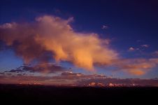 云在天上飄動(dòng),影子在大地上掠過(guò),碧綠的草地在云流的映襯下五彩斑斕,猶如一塊巨大的迷彩布,把草地打扮得分外妖嬈。云不墨守成規(guī),每時(shí)每刻都有新創(chuàng)意;云有層次的美,有型有款。時(shí)刻花樣百出、千奇萬(wàn)巧的云景,常使人遐想聯(lián)翩。我愛(ài)高原的云,因?yàn)橐嗾嬉嗷玫脑品路鸪闪诵撵`遠(yuǎn)游的載體,寄托著人們的留戀與追求。