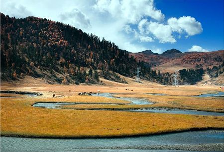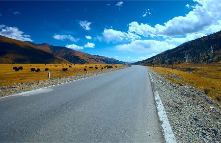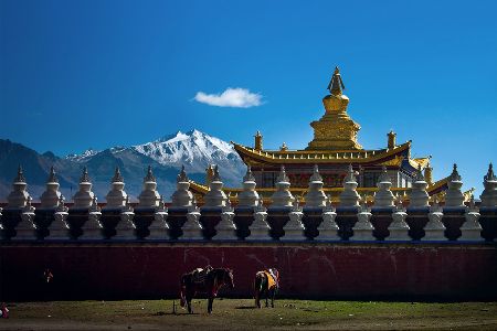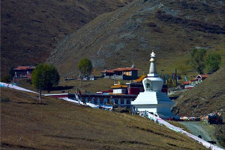 “塔公”,藏語意為“菩薩喜歡的地方”。相傳文成公主進(jìn)藏時,途經(jīng)此地,隨身攜帶的釋迦牟尼佛像忽然開口,示意愿留在此地。眾人立即就地按照佛像原貌復(fù)制一尊留下。從此,高原上有了被稱為“小大昭寺”的塔公寺。塔公草原也因此而得名。自康定沿川藏線西行,翻越折多山,過新都橋后北行不多時便是塔公了。沿線的河流、草原、森林、山體、寺廟、藏寨構(gòu)成了濃郁的甘藏風(fēng)情。高聳的雅拉雪山、起伏的草原、成群的牛羊和草原上金碧輝煌的“木雅經(jīng)塔”讓人留連忘返。