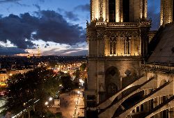 格蘭奇登上巴黎圣母院大教堂頂部。