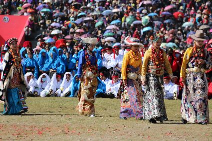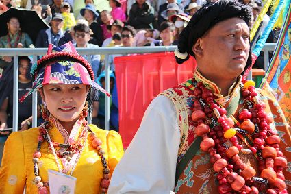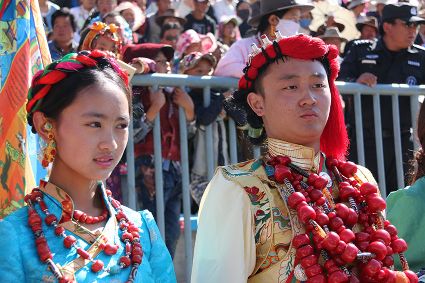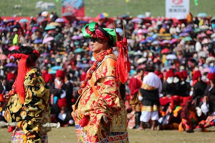 于是,年復(fù)一年,“漢子”與“花”兒們便挺拔、綻放在漢語(yǔ)表達(dá)的一個(gè)極點(diǎn)之上,被玄想,被渴望。對(duì)遠(yuǎn)道而來的人們或是世代居于高原的子民而言,康巴漢子與康巴之花不僅僅是美的化身,通過康巴漢子與康巴之花的評(píng)比,人們?cè)趯ふ乙粋€(gè)早已失落卻又天然渾成的世界。