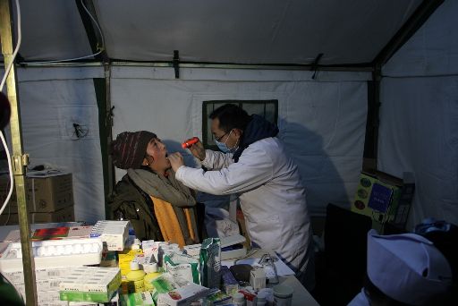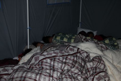 處于震中的塔公鄉(xiāng)祖慶小學(xué)在康定6.3級地震中受損嚴(yán)重,學(xué)校師生搬進了救災(zāi)帳篷。地震后,校長德吉擁忠一直忙于安頓孩子們,自己病了也沒時間去衛(wèi)生所,導(dǎo)致眼圈紅腫,聲音嘶啞。23日晚十一時,帶病校長拿著一支不太亮的手電到孩子們的帳篷去查夜。記者用鏡頭記錄下這一過程。