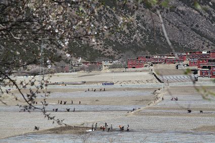 四月的康南大地,處處花紅柳綠、綠意盎然。在巴塘縣,一棟棟紅色的藏房掩映在青山綠水間,勤勞的人們正在忙著播種,一壟壟覆蓋著薄膜的土地,成了這個(gè)季節(jié)最美的畫卷。在得榮縣因都壩,田野被染成了讓人心醉的黃色,葡萄又吐出了新綠。一場春雪悄然而至,將太陽谷的大山變成了白色。在鄉(xiāng)城,大地已經(jīng)開始變得熾熱起來,遠(yuǎn)處的白藏房成了陽光下的最美風(fēng)景。