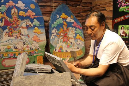 本屆非遺節(jié)期間,我州特色展館向游客展示了格薩爾彩繪石刻、藏族金屬鍛造技藝、藏文書(shū)法、噶瑪嘎孜畫(huà)派唐卡、阿西土陶燒制技藝、藏族牛羊毛編織技藝,南派藏醫(yī)藥等國(guó)家級(jí)、省級(jí)非遺項(xiàng)目。在歷時(shí)9天的活動(dòng)中,我州的非物質(zhì)文化遺產(chǎn)傳承人帶來(lái)了數(shù)百件非遺手工藝精品。大量的手工藝商品聚集展館的展示區(qū),供參觀者挑選,有些非遺傳承人還在現(xiàn)場(chǎng)為顧客現(xiàn)場(chǎng)制作作品,向廣大參觀者展示了民族手工藝的制作流程。