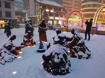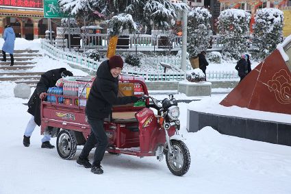 “風雨送春歸,飛雪迎春到。已是懸崖百丈冰,猶有花枝俏?!?月4日傍晚,大片大片的雪花,從昏暗的天空中紛紛揚揚飄落下來。霎時間,山川、河流、城市,全都籠罩在白蒙蒙的大雪之中。黃昏的雪,下得深切切的,好象有千絲萬縷的情緒似的,又像海水一般洶涌,能夠淹沒一切,還有一絲揭開藏頭露尾般的裸露感。雪花形態(tài)萬千、晶瑩透亮,好象出征的戰(zhàn)士,披著銀色的盔甲,又像是一片片白色的戰(zhàn)帆在遠航…… 落光了葉子的柳樹上,掛滿了毛茸茸、亮晶晶的銀條兒;冬夏常青的松樹和柏樹,堆滿了蓬松松、沉甸甸的雪球。那一片雪花在空中舞動著各種姿勢,或飛翔,或盤旋,或直直地快速墜落,鋪落在地上。“忽如一夜春風來,千樹萬樹梨花開”——這是雪的燦爛;一場瑞雪,扮美了康定,年味籠罩的康定城,嫵媚妖嬈。無論是背水姑娘、有著年味兒的將軍橋,還是大紅燈籠高高掛的康定門,都在雪后別有一番景致。與美景合影、和朋友玩雪都是最佳選擇。在風雪中,交警不畏嚴寒默默堅守崗位 ,指揮交通疏堵保暢。他們的身影在皚皚風雪路上站成一道道最美的風景,溫暖了康定。從早上六點開始,康定的環(huán)衛(wèi)工就迎著刺骨的寒風,開始了除冰雪保通暢的行動,在積雪覆蓋的康定城,早起的商販樂呵呵地做起了買賣;民工迎著雪后的寒風出門務工,他們是最可敬的人。