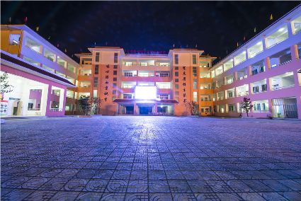 走進暮色中,華燈初上,夜幕下的寄宿制學(xué)校更加美麗。具有幾何構(gòu)成美感的教學(xué)樓鐫刻著寒來暑往生琴書,嘔心瀝血育桃李。