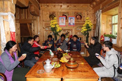 走進(jìn)巨龍鄉(xiāng)然央村,傳統(tǒng)藏房依山而建,巨龍河水悄悄流過。曾經(jīng)泥濘的土路變成平整的水泥路,藏寨房前、鄉(xiāng)間路邊種滿了鮮花,呈現(xiàn)出嶄新的藏家田園風(fēng)光。近年來,然央村按照全域旅游帶動(dòng)全面發(fā)展的要求,鋪設(shè)入戶道路、改善村民居住環(huán)境、建設(shè)旅游設(shè)施、開展風(fēng)貌打造、推廣大棚蔬菜種植和家畜圈養(yǎng),真正讓群眾住上了好房子,過上了好日子。