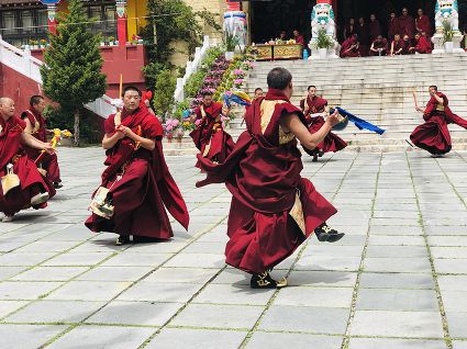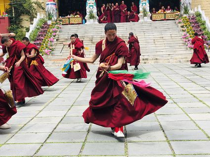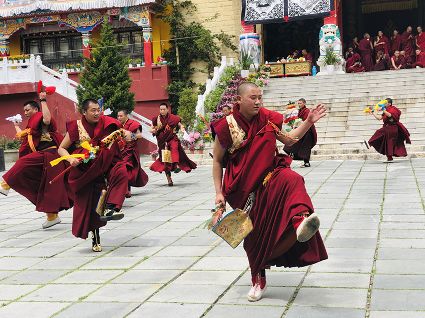 為紀(jì)念釋迦牟尼佛的誕辰(浴佛)日,康定群眾每年農(nóng)歷四月八日都要舉行隆重盛大的紀(jì)念活動(dòng),稱“四月八”轉(zhuǎn)山會(huì),南無(wú)寺的跳神活動(dòng)就是其中之一。