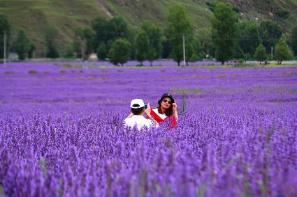 “沒想到攝影天堂竟然還藏著猶如‘普羅旺斯’一樣的薰衣草花海,真是猶如夢(mèng)境?!薄霸谒{(lán)天白云下,紫色花海令人沉醉!”“高原清新的空氣中還彌漫著花香,一幀一點(diǎn)都是風(fēng)景大片。”“成功打卡全國海拔最高的薰衣草花海,趕快轉(zhuǎn)發(fā)朋友圈?!?/p>