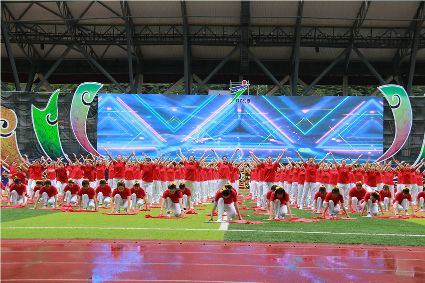 運動甘孜,將現(xiàn)代體育與傳統(tǒng)體育完美鏈接,讓全民健康戰(zhàn)略目標與多彩的甘孜民族文化水乳交融。舞韻甘孜,傳承甘孜民間傳統(tǒng)技藝,創(chuàng)新甘孜民間藝術(shù)。奮進甘孜,吹響時代集結(jié)號,同心鑄造中國夢;激情甘孜,將信念舉過頭頂,將大美鐫刻天地……。昨(22)日上午,甘孜州第三屆運動會在康定北門體育場盛大開幕。來自全州18個縣(市)和海螺溝景區(qū)管理局、亞丁景區(qū)管理局各行業(yè)、各條戰(zhàn)線的20支隊伍近1300名運動員及各界嘉賓和群眾齊聚康定,共襄一場規(guī)??涨暗捏w育盛會,共慶中華人民共和國70華誕。