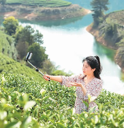 近日,浙江省杭州市淳安縣姜家鎮(zhèn)中心小學(xué)一位語文老師通過網(wǎng)絡(luò)直播上習(xí)作課,在茶園現(xiàn)場(chǎng)講解和茶有關(guān)的傳統(tǒng)文化。毛勇鋒攝