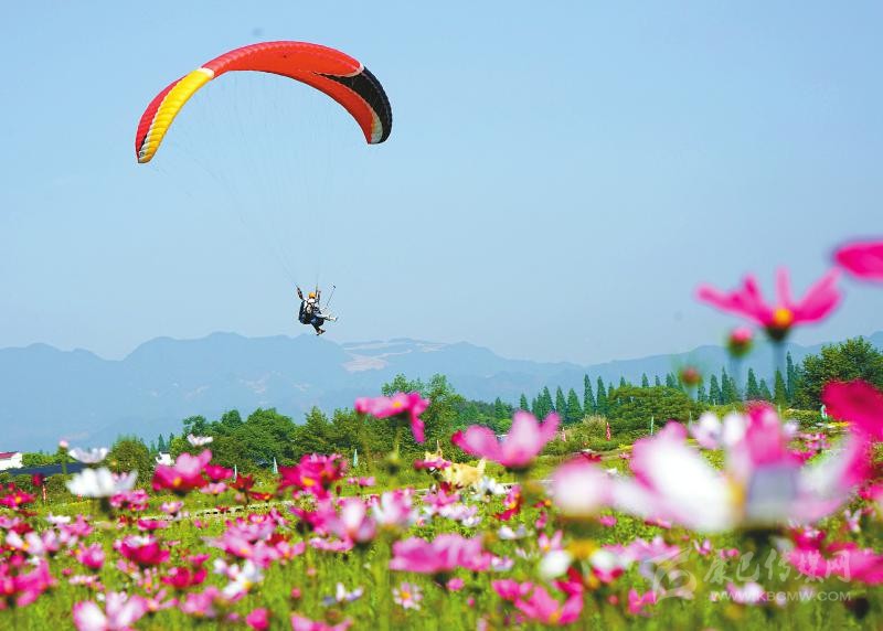 5月4日,游客在浙江省金華市武義縣大斗山飛行營地體驗(yàn)滑翔傘。“五一”小長假期間,許多人選擇到戶外與大自然親近。新華社發(fā)