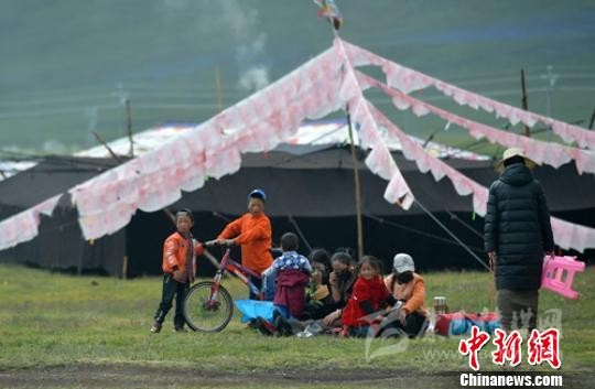 扎溪卡草原上藏族同胞們搭起了一頂頂帳篷。 劉忠俊 攝