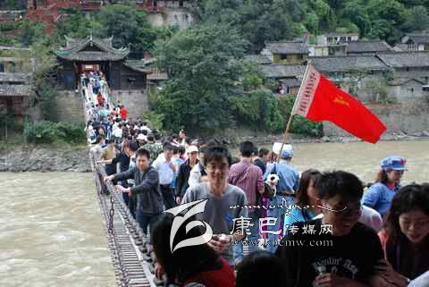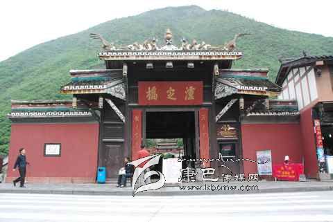 瀘定橋始建于清康熙44年 (1705年),次年五月竣工,康熙御筆題名“瀘定橋”。橋身共由13根鐵鏈組成,其中底鏈九根,扶手四根。橋東西兩端各有橋臺(tái)一座,西端觀音閣下有康熙題寫(xiě)之《瀘定橋》石碑,橋東有《御制瀘定橋碑記》,瀘定橋是大渡河上第一座穩(wěn)固的大鐵索橋。1935年中國(guó)工農(nóng)紅軍晝夜行軍240里,英勇飛奪瀘定橋,打開(kāi)了北上抗日的通道,“十三根鐵鏈托起了一個(gè)共和國(guó)”,毛澤東同志為此寫(xiě)下了“大渡橋橫鐵索寒”的壯麗詩(shī)句,瀘定橋自此名揚(yáng)四海,成為中國(guó)紅色第一橋。為紀(jì)念紅軍飛奪瀘定橋這一壯舉和奇跡,于1985年在沙壩建立了“紅軍飛奪瀘定橋紀(jì)念館”和紀(jì)念碑。紅軍飛奪瀘定橋紀(jì)念碑由鄧小平同志題寫(xiě)碑名,聶榮臻元帥題寫(xiě)碑文。紅軍飛奪瀘定橋紀(jì)念館收集了紅軍飛奪瀘定橋時(shí)用過(guò)的門板、槍、炮、紅軍的旗幟、文件箱、信件證明、標(biāo)語(yǔ)、戰(zhàn)報(bào)、手雷、馬刀等珍貴文物110余件以及177幅歷史照片。瀘定橋是全國(guó)首批重點(diǎn)文物保護(hù)單位,是國(guó)家重點(diǎn)培育的 “紅色旅游區(qū)”、重點(diǎn)組織規(guī)劃的 “紅色旅游精品線路”和重點(diǎn)建設(shè)的 “紅色旅游經(jīng)典景區(qū)”。