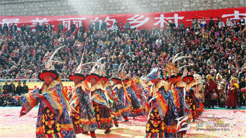 十七世紀(jì)時(shí),丹巴巴底大坪村阿洛、益西降稱等喇嘛去西藏學(xué)經(jīng),求學(xué)期間,征行九世班禪同意在日喀則扎什倫布寺學(xué)習(xí)藏戲,學(xué)了《呷拉翁布》(另名《卓瓦桑姆》)和《甲扎共龔》(譯為《文成公主》)二劇的唱腔、鼓鈸奏法、表演技巧,帶回巴底黃金寺,挑選寺中30余名僧徒成立黃金寺藏戲團(tuán)。此后,每年都在規(guī)定時(shí)間演出。丹巴中路藏戲,是中路寺廟喇嘛去西藏學(xué)經(jīng)時(shí)帶回的。