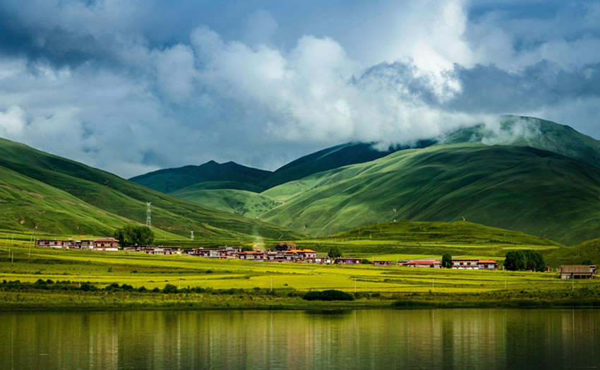 如果當天天氣非常好,信步走向湖邊,潮濕清新的空氣撲面而來。白云掛在半空忽忽悠悠飄來飄去最終匯集在馬日岡神山之巔,湖邊的坡地上光影快速游動,讓人不禁心生疑竇——此處就是天堂。