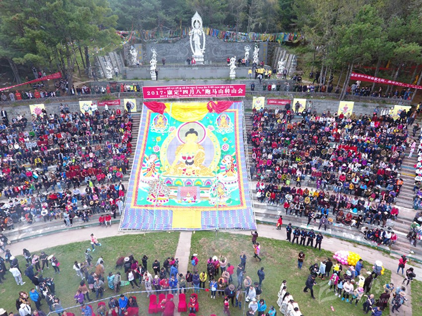 5月3日的康定祥云朵朵、春風(fēng)動人,跑馬山上更是梵音陣陣、歌舞歡騰、人潮涌動、站無虛席;一年一度的康定“四月八”跑馬山國際轉(zhuǎn)山會在此火爆上演,數(shù)萬中外游客和藏區(qū)群眾歡聚在此,共享文化盛宴、共續(xù)民俗經(jīng)典,用歡歌踏舞祈??刀ā?/span>