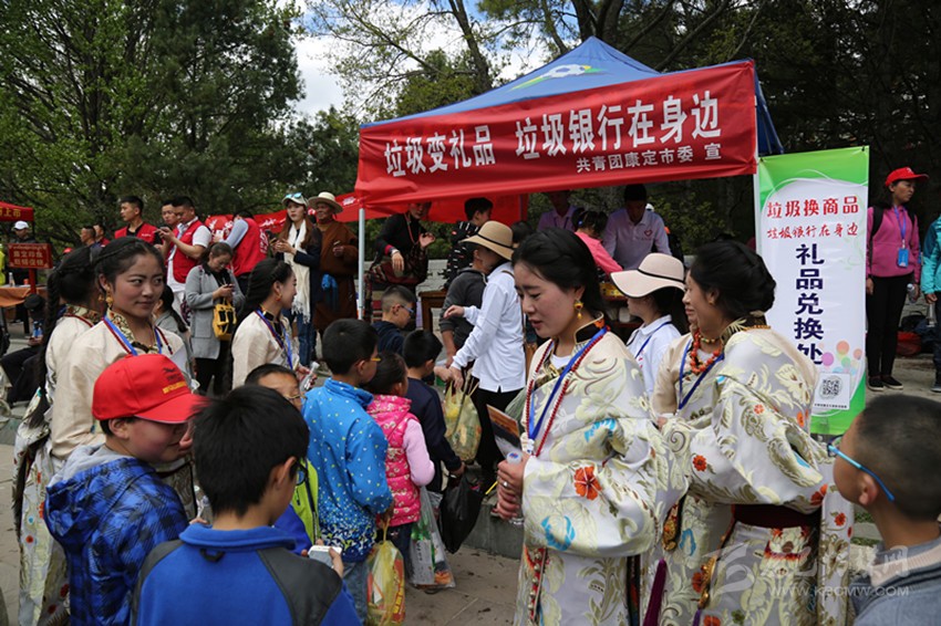 曬佛儀式之后是第三屆“梵音”音樂會。音樂會在由州歌舞團演繹的面具舞《祈福康定》中拉開序幕,13個表演節(jié)目中,既有透人心靈的梵音演唱和二胡演奏,又有激蕩人心的說唱表演和流行演唱,還有質(zhì)樸脫俗的原生態(tài)民歌演唱和群舞鍋莊,時尚和古樸、流行與傳統(tǒng)都在這里得到了集中展現(xiàn)。原生態(tài)歌曲《溜溜調(diào)》,原創(chuàng)歌曲《康定先生》《新編木雅鍋莊》等極具康定特色的節(jié)目更是將情歌故里的人之美、景之美、文化之美展現(xiàn)得淋漓盡致。將近90分鐘的表演高潮迭起、精彩紛呈,現(xiàn)場喝彩聲、歡呼聲此起彼伏,手機、單反、平板、航拍交相輝映,忙著錄視頻、拍照片、發(fā)微博、曬動態(tài)的人更是比比皆是在。除了精彩的表演,現(xiàn)場身著華麗盛裝的康巴美女也是一道靚麗的風(fēng)景,引得無數(shù)中外游客爭相與之合影留戀。從四面八方趕來叫賣、推銷各種商品的店商和攤販也為此次活動增添了不少生氣。此外,康定團市委還特意在活動現(xiàn)場開展了“垃圾變禮品”活動,通過贈送禮品鼓勵大家清理垃圾,此次活動雖然人流巨大但場地衛(wèi)生異常良好。