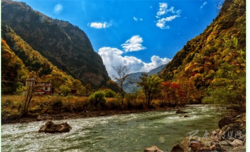 東谷河原名牦牛河,在丹巴縣五個(gè)主干水系中,它是最小的一條,兩岸多為峽谷地貌,僅在支溝匯合處出現(xiàn)有平壩草地。在陡峭高聳的河谷兩岸,針闊葉混交林呈現(xiàn)出深淺不同的綠色,既有青黛,墨綠,又有嫩綠,草青及四季輪番開花的不同品種的大小杜鵑。還不時(shí)有珍禽出沒。每當(dāng)秋高氣爽的季節(jié),一團(tuán)團(tuán),一簇簇的紅葉伴隨杜鵑花在林間綻放,伴以宛轉(zhuǎn)的啾啾鳥嗚;河水清澈明亮,時(shí)而奔騰而下,形成飛瀑,時(shí)而伴著叮咚之聲潺潺而過,這種美景何處能有?老革命家胡耀邦同志游覽后,對(duì)此青山綠水贊不絕口,并稱之為“天然盆景”!盆景藝術(shù)一向以“無聲的詩(shī)詞,立體的畫卷”來形容。牦牛谷景點(diǎn)正是一個(gè)有著巨大篇幅的詩(shī)詞,一個(gè)有著廣闊的立體畫卷。