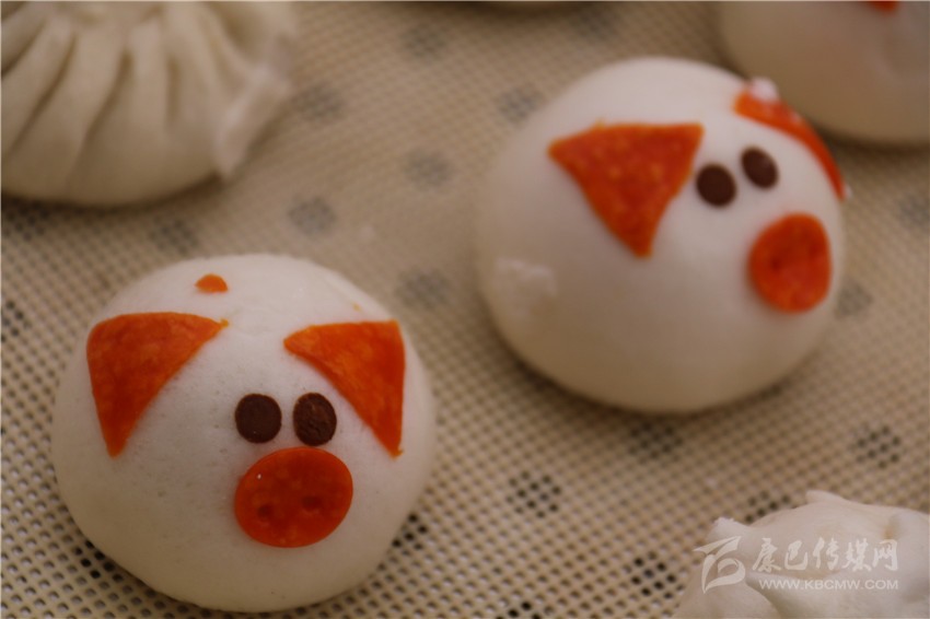 “這個包子也長得太可愛了吧!”記者順著旁邊的驚呼聲看去,五歲的肖紅拿著一個做成小豬樣的包子對著她奶奶說。趕緊走近店里,記者也來了份兒奶黃餡兒的卡通小豬包子,一口咬下,奶黃順著缺了的口子流出來,趕緊吸了一口,甜甜的味道瞬間在舌尖化開。為了滿足記者的好奇心,老板介紹說:“將面團(tuán)捏好搟薄,再包入餡,收口朝下,像包包子那樣捏好口,捏出有點(diǎn)像豬的型狀,再撕一點(diǎn)黃色面團(tuán)做個豬鼻子,用一根筷子按下去成兩個鼻孔,再捏兩只耳朵和一根尾巴,準(zhǔn)備些黑芝麻,做眼晴,拿根筷子點(diǎn)點(diǎn)水沾一個芝麻放在豬身上,可愛的卡通小豬包就做好了?!钡赇伹皵D滿了小朋友,老板告訴記者:“這種卡通包子之所以受小朋友的喜歡不僅是因為其可愛的卡通外表,而且我們所有的卡通包子餡兒都是甜的。我們精準(zhǔn)定位,投孩子們所好,取得的成效還不錯。這次來參加美食節(jié),只帶來了小豬和刺猬兩種卡通形象的包子,賣得挺好,準(zhǔn)備在接下來的幾天將小猴子等卡通形象的包子也帶過來。”