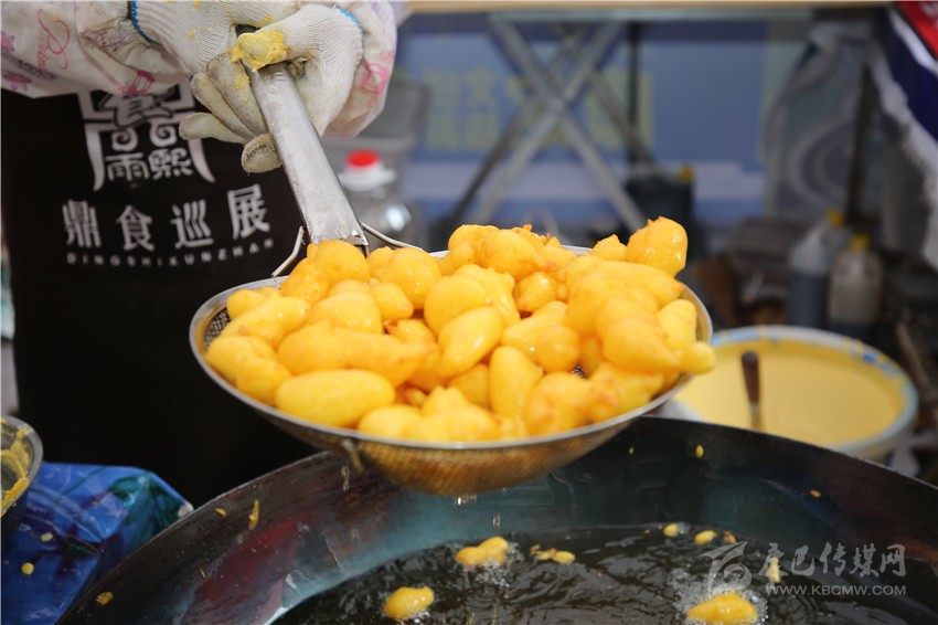 要說美食節(jié)最炫酷的店鋪,那非“印度飛餅”莫屬了。記者穿過層層圍觀的人群,點(diǎn)了一份菠蘿飛餅。只見廚師將捏好的面團(tuán)在案板上揉了幾下,便捏緊面餅一端按順時針方向轉(zhuǎn)動,手里的面餅越轉(zhuǎn)越大,越轉(zhuǎn)越薄,幾近透明,接著就是放餡料,稍做煎炸,切割裝盤,短短一分鐘內(nèi),一氣呵成。記者接過盤,咬下一口,“喀嚓”一聲,再一口就吃到了菠蘿的清香,外層淺黃松脆,內(nèi)層綿軟白皙,略帶甜味,好一個外脆內(nèi)嫩啊!嚼起來層次豐富,一軟一脆,口感對比強(qiáng)烈,嚼過之后,齒頰留芳。當(dāng)脆餅撞上菠蘿的清香,就像在夏天突然掉進(jìn)一個水池,清爽又驚喜?!案杏X就是一件的藝術(shù)品啊!”如此的驚嘆聲從人群中迸發(fā)出來。