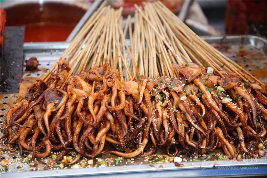 作為一個四川人,對于麻辣味的食物毫無抵抗力,在康定后街林立的商鋪中,記者一眼就相中了“深海魷魚花”這家店??粗褐t油的魷魚花靜靜地躺在紅椒和芹菜間,記者咽了咽口水,向老板買了一份兒。“真是純純的川味兒沒錯了,又麻又辣的?!庇浾邔习逭f。老板回答到:“魷魚花最講究的就是刀法了,要切得好看。雖然在顧客看來都差不多樣子,但是我每次都要經(jīng)過細(xì)細(xì)斟酌再一刀一刀的切,爭取多弄幾種樣式,現(xiàn)在我的常客們也會細(xì)細(xì)地考究我切的魷魚花了。以前我只賣烤魷魚,只是在家里偶爾會給我兒子做魷魚花,后來看我兒子喜歡吃,才開始慢慢地賣魷魚花,沒想到還是很受歡迎。這次美食節(jié),我發(fā)現(xiàn)沒有人做魷魚花,所以我就帶著我兒子喜歡的魷魚花來參加這次美食節(jié)了?!崩习逍χ浾哒f。