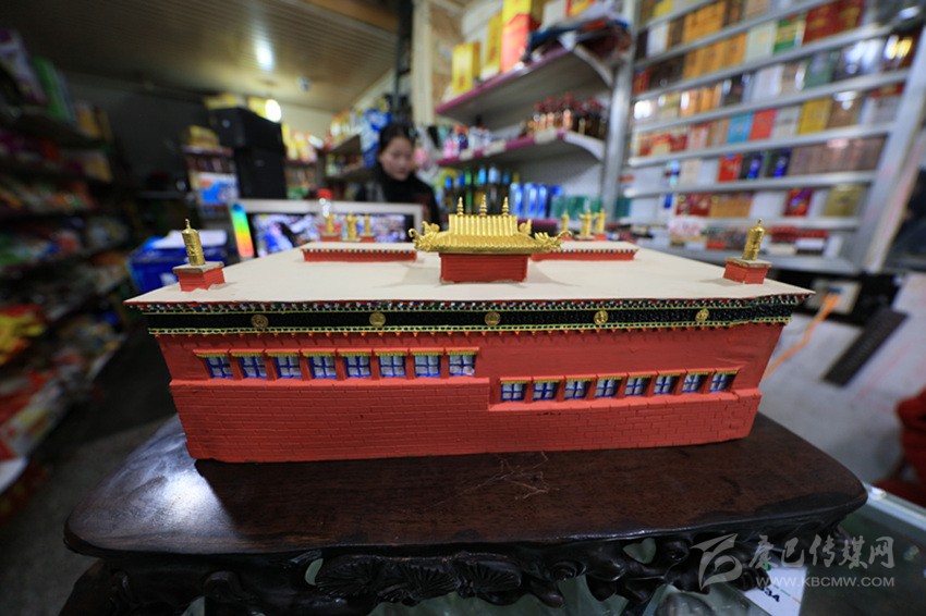 偌大的德格印經(jīng)院你能不能“請(qǐng)回家”?不能。那現(xiàn)在,你能把徳格印經(jīng)院“請(qǐng)回家”了。2016年,德格手工藝人寸潤炳按照德格印經(jīng)院原型,以1:5000的比例設(shè)計(jì)和制作完成了“德格印經(jīng)院立體擺件”《三和·吉祥巴宮》。