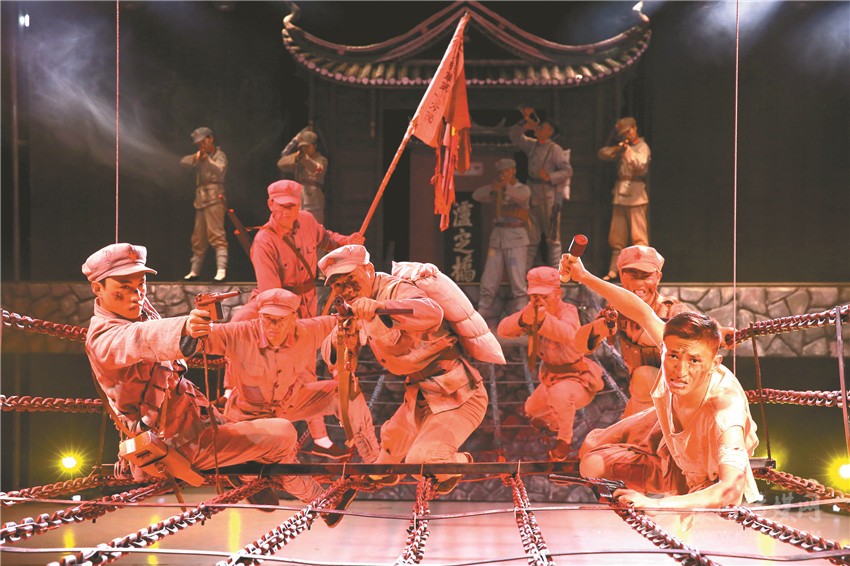 據悉,實景劇從5月29日開演以來,已演出162場,觀眾達1萬余人。“飛奪瀘定橋是紅軍長征濃墨重彩的一筆,紅色實景劇《飛奪瀘定橋》再現歷史,引起觀眾共鳴,助推了紅色旅游,讓更多的人了解那段輝煌歷史,激發(fā)愛國熱情?!憋w奪瀘定橋紀念館相關負責人郭成燕說。