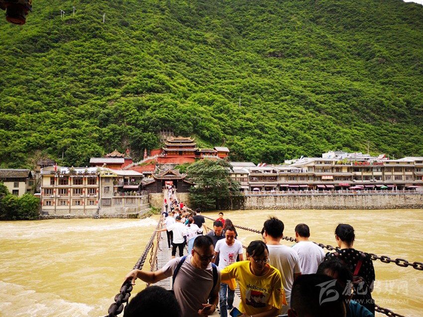 橋下波濤洶涌,橋上游人如織。這就是瀘定橋。