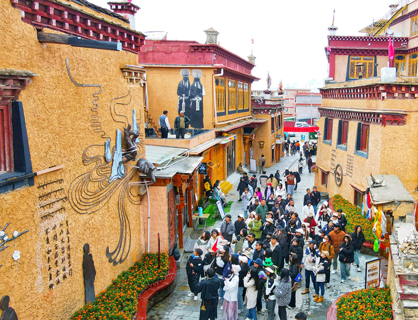 景區(qū)美食、休閑娛樂、非遺商品三個(gè)特色街道的商家們?yōu)橛佑慰鸵沧鲎懔藴?zhǔn)備,各種特色工藝品、熱氣騰騰的美食隨處可見,還有民族特色歌舞表演,讓大家感受藏族傳統(tǒng)文化的魅力。