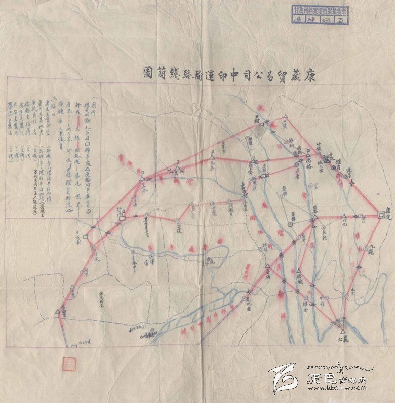 在很多人的印象中,所說的“茶馬古道”僅是從四川的雅安到康定,然后從康定到青海牧區(qū)和西藏拉薩。事實(shí)上,這條古道直達(dá)印度。在塵封的檔案中發(fā)現(xiàn)一份“康藏貿(mào)易公司中印運(yùn)輸路線簡圖”,清晰地標(biāo)明從康定往西走直到印度加爾各達(dá)等地的商品運(yùn)輸線路。