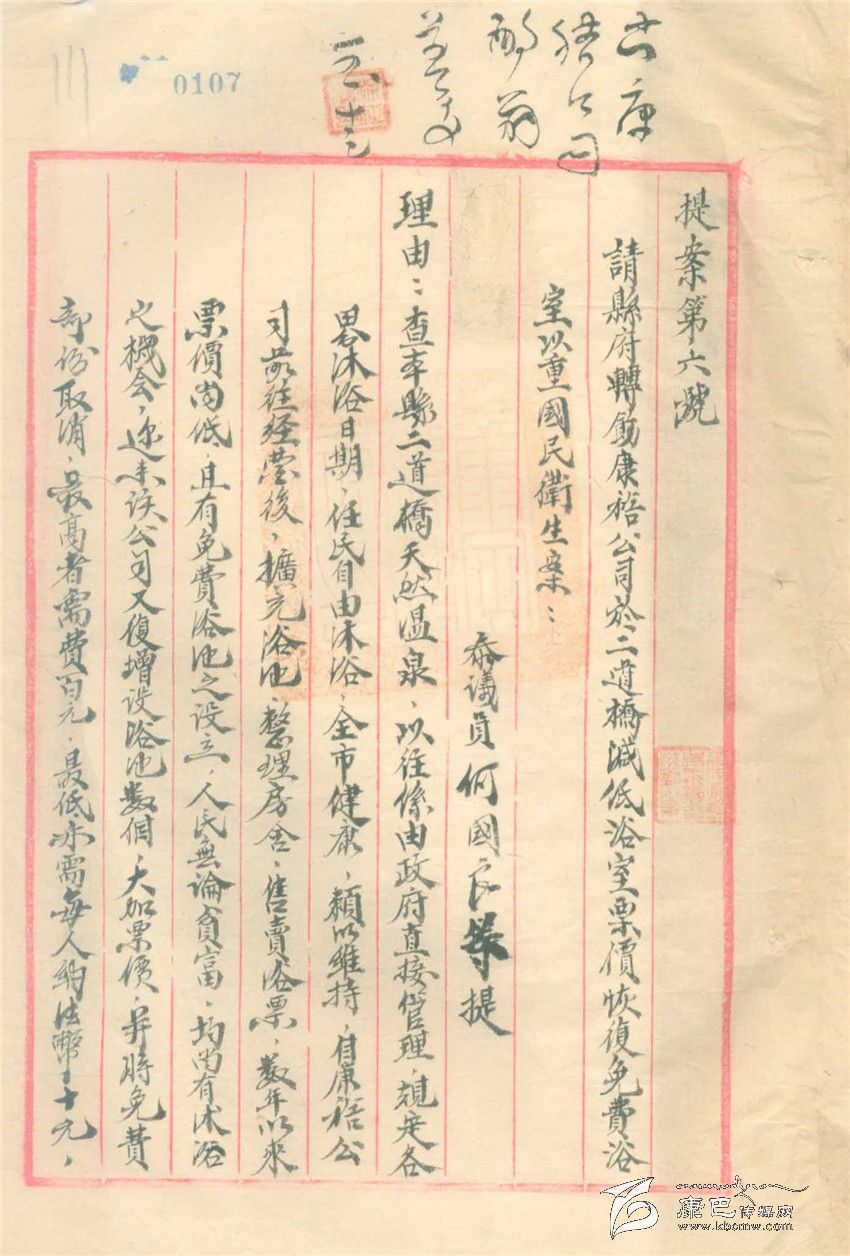 另一份舊檔案也有趣,這是一份由一名參議員提出的提案,內(nèi)容是由于生活在康定的人、包括公務(wù)人員在內(nèi),因為收入少,生活困難。請求康定縣政府出面給經(jīng)營二道橋的“康裕公司”提出二道橋洗浴不收費,經(jīng)營方的虧空可以在其它經(jīng)營,如餐飲獲得的利潤中解決。參議會上還通過了這個提案,說是“原案所擬辦法尚屬可行,擬送請縣府轉(zhuǎn)飭康裕公司照辦”。這份提案再無下文,康裕公司是不是照辦了,不得而知,就是參議會是不是轉(zhuǎn)給了康定縣政府也不得而知。以今天的眼光看,這份提案有滑稽、有趣的一面,卻也有關(guān)注民生而十分無奈的一面。