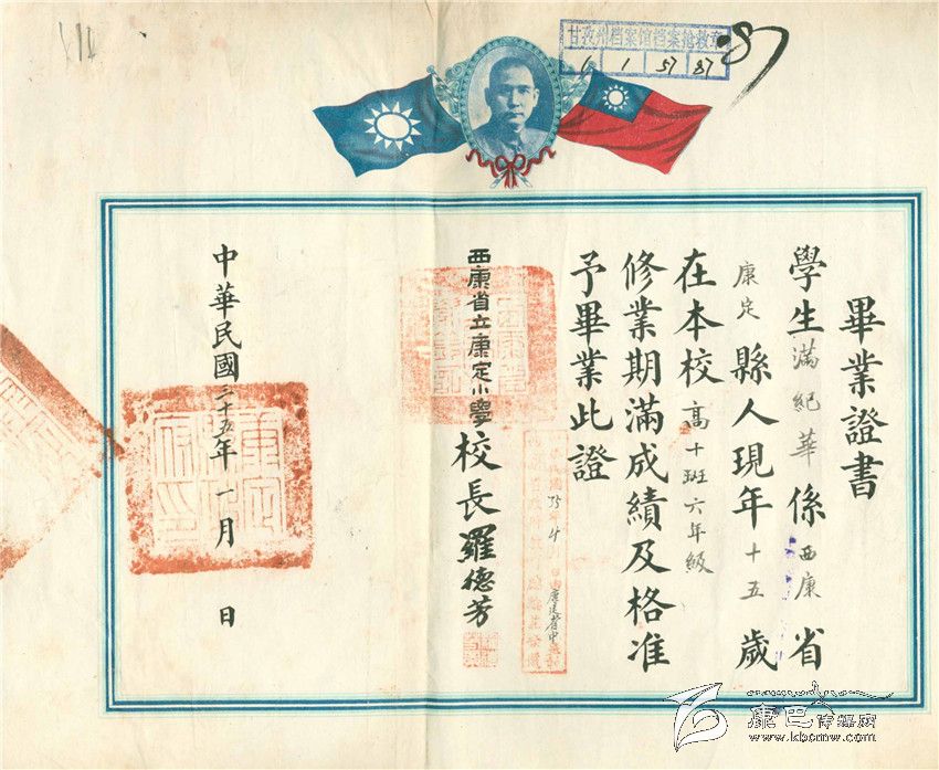 這里的幾份畢業(yè)證書,有由“國立康定師范學校”所頒發(fā) 畢業(yè)證,也有由小學校頒發(fā)的小學畢業(yè)證。通過這些畢業(yè)證,讓今天的人們也能感受到在那個時期,西康地方的學校教育十分正規(guī),也就是那個時期畢業(yè)的許多學生,成為了新中國成立后,建設社會主義新藏區(qū)的一支重要力量。