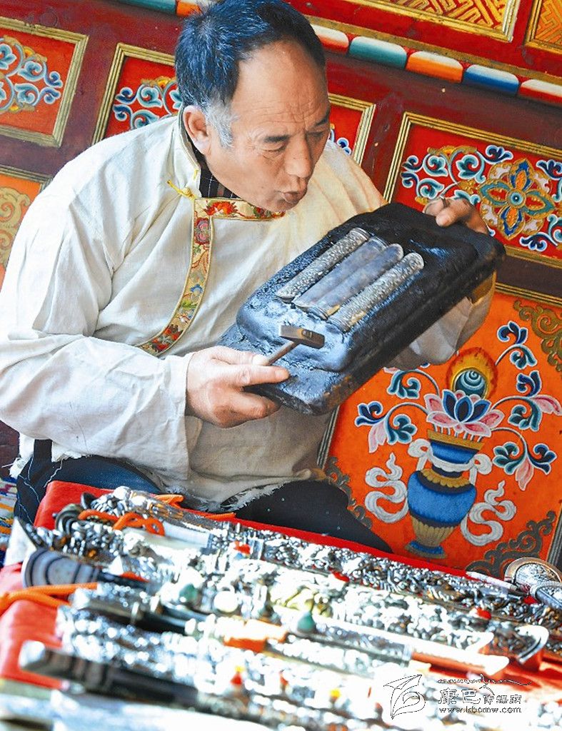 實際上,河坡藏族手工藝的歷史,可以追溯到1300多年前。自從松贊干布時期,藏王屯兵康區(qū),不斷向東南內(nèi)地擴張起,這里就開始了刀槍、戈矛、弓箭等兵器的鑄造。河坡工匠利用當?shù)罔F礦土法煉鐵,作為鑄造兵器的原材料。附近的熱加鄉(xiāng)阿仁溝,如今還能見到當時的煉鐵遺跡。