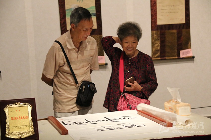挑選書寫用紙、設(shè)計(jì)藏文布局。四川省工藝美術(shù)大師呷多也是忙碌不停。“展覽越辦越好、越辦越有特色了?!边@是他多次參加我州文化展覽后的親身感受,他直言本次展覽又是一次向前的踏步。