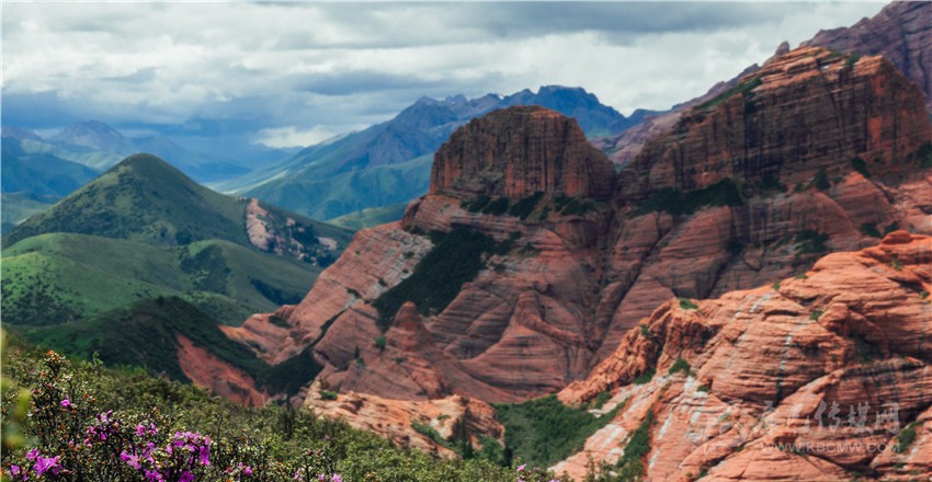 “快看,紅山千年之吻?!币晃挥浾咴隈R背上驚呼。抬頭望去,兩座紅山緊依而立,伴隨藍天、白云與綠草,構成一幅絕妙美景圖;在距丹霞地貌最近的埡口處,大家紛紛下馬觀賞丹霞風光?!皦延^震撼、鬼斧神工”,專家學者無不驚嘆贊絕倫,即便天氣不佳,海拔較高,他們時而交流討論、時而拍照留戀,高昂情緒一直持續(xù)。
