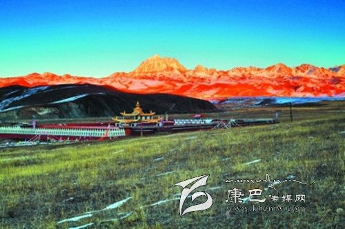冬日的塔公草原。夕陽(yáng)下,一個(gè)人緩步行在高低起伏、荒去了的草地。