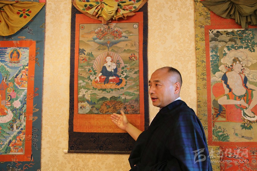 他表示:“其中,多幅唐卡系首次公開面世。如:70幅八邦寺印經(jīng)院畫板及拓印本、8幅八邦寺八大佛弟子唐卡、4幅南派藏醫(yī)掛圖唐卡、13幅八邦寺護(hù)法黑唐等,都是具有極高的價(jià)值精品唐卡?!?/p>