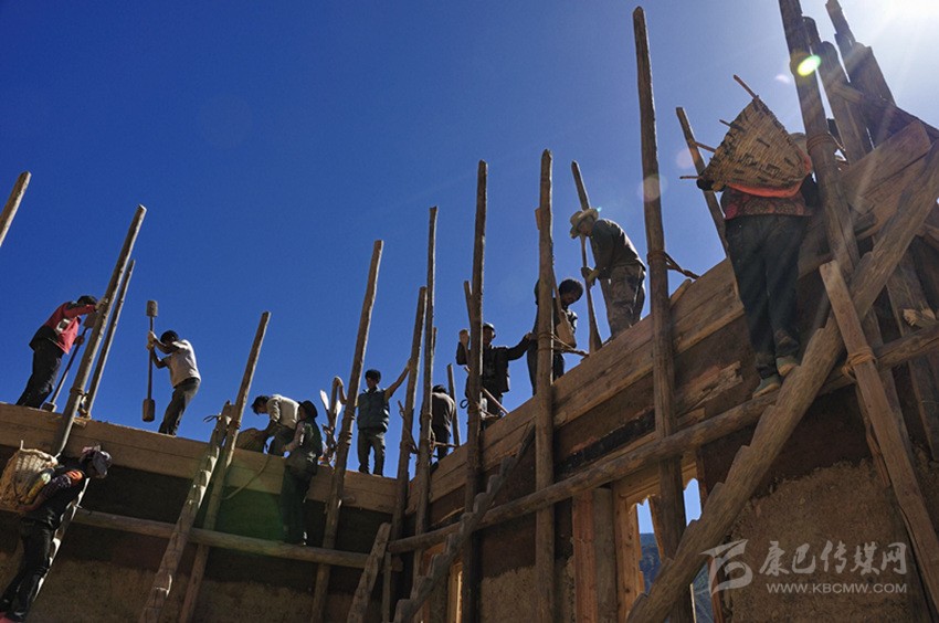 鄉(xiāng)城白色藏房是一種通過版筑營造工藝修建的夯土建筑?!佰裕╦i)”是中國古代的一個量詞,指一種借助木框夯實土坯的單位,一框為一墼。也指一種古老的生土建筑營造工藝。戰(zhàn)國《孟子》:“舜發(fā)于畎畝之中,傅說舉于版筑之間”。相傳傅說是商王武丁時期出身于夯土版筑工匠的賢臣。也就是說除了“墼”早在商代中國就已經(jīng)出現(xiàn)了版筑工藝的夯土技術(shù)。鄉(xiāng)城白色藏房正是這種版筑夯土建筑工藝的代表之一。夯土這種古老的建筑工藝,在現(xiàn)代伴隨著工業(yè)文明的發(fā)展,已經(jīng)逐漸淡出了主流建筑營造的范疇。但其在生態(tài)和文化方面的價值仍值得我們?nèi)リP(guān)注。正是在夯土建筑工藝在世界走向沒落和消亡之時,在橫斷山脈的深處,中國西南部的四川省鄉(xiāng)城縣的谷地中,卻因為夯土建筑具有就地取材、施工簡易、冬暖夏涼、造價相對低廉等特點,以鄉(xiāng)城白色藏房為代表的夯土建筑營造工藝得以完整保留,且工藝技術(shù)還有了進一步的提高。是這種建筑營造工藝在中國規(guī)模最大的遺存。