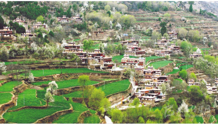 甲居,藏語(yǔ)是“百戶(hù)人家”的意思。實(shí)際上甲居藏寨分為一村、二村、三村共150余戶(hù)人家,700多人口,甲居藏寨所在地形如一個(gè)面積為5平方公里的大盆,大盆斜倚卡帕瑪群山,一棟棟外形別致、色彩鮮艷的典型嘉絨藏式民居錯(cuò)落有致地從山腳一直排到半山。甲居人一代一代修造的梯田點(diǎn)綴民居之間,顯示出別具一格的田園韻味。茂密的柏樹(shù)掩映著民居,這些別致的民居不象故宮規(guī)模對(duì)稱(chēng),也不象蘇州園林隨興布局。碉樓式的民居雖無(wú)嚴(yán)格的統(tǒng)一規(guī)劃,但卻似乎不是隨意而建,每棟民居都有它獨(dú)特?fù)屟鄣娘L(fēng)格。正是這些別具一格的座座碉樓民居,構(gòu)成甲居藏寨的精妙絕倫。民居外所立的經(jīng)幡以及房頂隨風(fēng)飄動(dòng)的瑪尼旗,又為恬靜如詩(shī)的鄉(xiāng)土民居增添了無(wú)限神秘的色彩。祥云籠罩山頂,溪水潺潺環(huán)流,山腳滾滾河流,山水渾映,天水合一,筆者一行不由驚嘆,甲居藏寨 ,名符其實(shí)的人間仙境,世外桃源!先前道路險(xiǎn)峻留在心底的驚懼早已一掃而光,一行人激動(dòng)著迫不及待地?fù)渖碛诿啦粍偈盏南删持小?/p>