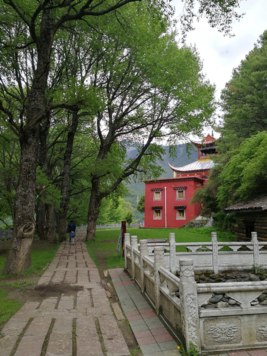 中國民俗有“大年初一不竄門”,這一天,康定人很多都會去寺廟燒香敬佛。前年大年初一,我便去了觀音閣。進(jìn)門處,有專供燒紙錢的地方。再上階梯,有長列的白色佛塔,進(jìn)寺就可點(diǎn)燈朝拜。出了觀音閣,我順道去找獅子巖。公路一側(cè)的堡坎已將原來的小徑斬?cái)?,翻上堡坎,小徑幾乎已沒了蹤跡。再仰頭望,獅子巖已是掩映在濃密的綠樹雜叢間。長在右側(cè)的花椒樹,已不見蹤影。幾株高大的白楊樹遮天蔽日,最大的都長到盆口粗了?!鞍倌陿淠尽?,這無疑還是當(dāng)年那幾棵白楊樹了。我艱難地鉆過荒叢爬到獅子巖腳下,那“祭祀臺”上如過去一樣擺放有貢品,旁邊和樹枝上掛有經(jīng)幡,但周圍仍沒有一絲煙熏火燎過的痕跡。