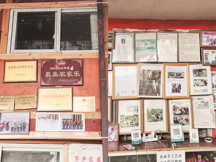 她說(shuō):“一開(kāi)始,我的目的就是想掙錢(qián),想要這個(gè)家庭擺脫貧困。在開(kāi)辦這個(gè)農(nóng)莊之前,我家一直就在借債還債的循環(huán)中苦苦掙扎。天有不測(cè)風(fēng)云,2006年丈夫華建做心臟手術(shù),2007年又做膽息肉手術(shù),花光了四處借來(lái)的四萬(wàn)多塊錢(qián),丈夫出院回家后,不能外出打工,又要急著還人家的錢(qián),在無(wú)計(jì)可施的時(shí)候,我們想到了搞養(yǎng)殖,養(yǎng)魚(yú)魚(yú)死光了,養(yǎng)雞倒是成功了,但是賣(mài)不出去,基本虧了個(gè)底朝天。我只好四處打工,但是基本上都處于入不敷出的尷尬境地?!?013年長(zhǎng)子華啟明住院做脾裂手術(shù),2015年公公腦梗,又去州醫(yī)院手術(shù),好像前半輩子就是借錢(qián)、還錢(qián),拆東墻補(bǔ)西墻,無(wú)可奈何。正當(dāng)經(jīng)濟(jì)上緊張得不可開(kāi)交,覺(jué)得山窮水盡時(shí),國(guó)家出臺(tái)了鄉(xiāng)村振興戰(zhàn)略,她響應(yīng)國(guó)家號(hào)召,想到了回到家鄉(xiāng)開(kāi)辦農(nóng)家樂(lè)。第一年,在“婦女創(chuàng)業(yè)”貸款8萬(wàn)元、信用社貸款16萬(wàn)元,把農(nóng)家樂(lè)勉強(qiáng)辦起來(lái)了。在幾年的經(jīng)營(yíng)中,“茅廬農(nóng)莊”的口碑越來(lái)越好,在2016年被杵坭鄉(xiāng)授予“2016大眾評(píng)選最美農(nóng)家樂(lè)”,在2018年人氣美食商家網(wǎng)評(píng)選為“瀘定縣網(wǎng)友喜愛(ài)美食商家評(píng)選季軍”,2019年人氣生態(tài)評(píng)選網(wǎng)評(píng)選為“瀘定縣網(wǎng)友喜愛(ài)生態(tài)休閑農(nóng)莊評(píng)選季軍”。現(xiàn)在,農(nóng)莊的生意越來(lái)越好,規(guī)模越來(lái)越大,家里的日子越來(lái)越好,一家人也過(guò)上了幸福的生活。