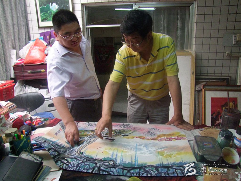 他用墊玻板的植絨紙繪畫,利用植絨紙的厚重、粗糙以及水粉顏料的附著力和鮮明色彩,融合中國畫、唐卡畫、西洋畫之精華,首創(chuàng)“文哥植絨畫”,其作品色澤明朗,厚重深沉,粉質(zhì)不掩孤傲,麗色難奪率真。水韻、筆韻、色韻、意蘊盡在其中,他出版的年畫作品在短時間內(nèi)便被人們一搶而空。