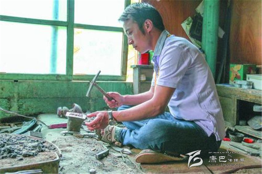 從金沙江支流贈(zèng)曲河溯流而上,不到半個(gè)小時(shí)便可到白玉縣河坡鄉(xiāng)。就是這個(gè)不起眼的“小地方”,從1300多年前便開始鑄造兵器,曾被譽(yù)為“格薩爾王的兵器庫(kù)”。2008年,“藏族金屬鍛造技藝”被列入國(guó)家級(jí)非物質(zhì)文化遺產(chǎn)名錄,其中便包括以河坡為代表的“藏刀鍛制技藝”。 在記者的想象中,河坡鄉(xiāng)應(yīng)該是一派作坊連片、熱火朝天、叮叮當(dāng)當(dāng)?shù)氖止ぶ圃靾?chǎng)景。然而,當(dāng)記者來到這里,卻沒有看到這樣的景象。原來,河坡鄉(xiāng)的手工藝生產(chǎn)模式以家庭作坊為主,每家每戶的“工作室”常常設(shè)在自家房屋二樓一角。在白玉河坡鄉(xiāng)每個(gè)家庭作坊,通常都有自己擅長(zhǎng)的專業(yè)產(chǎn)品和特色。例如,手工藝人根秋丹貞擅長(zhǎng)制作佛具, 伍金則擅長(zhǎng)打制藏刀。其他如村多、麥達(dá)、麥學(xué)等各個(gè)村寨,還分散著諸多以生產(chǎn)馬具、飾品、日常生活用品等為主的家庭作坊。