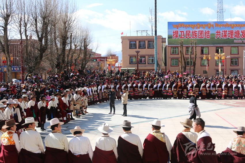 在藏歷火雞新年期間,理塘縣精心組織了以“勒通古鎮(zhèn)·祥和新春”為主題的群眾文藝匯演,分為“吉祥頌”“吉祥韻”“吉祥贊”“吉祥魂”四大篇章。其中“吉祥頌”和“吉祥魂”兩個(gè)篇章以“協(xié)巴”和“理塘鍋莊”兩個(gè)省、州級(jí)非物文化遺產(chǎn)展演,豐富了理塘廣大干部群眾的文化生活。他們歡聚一起,處處歡聲笑語,一派祥和喜慶的景象。