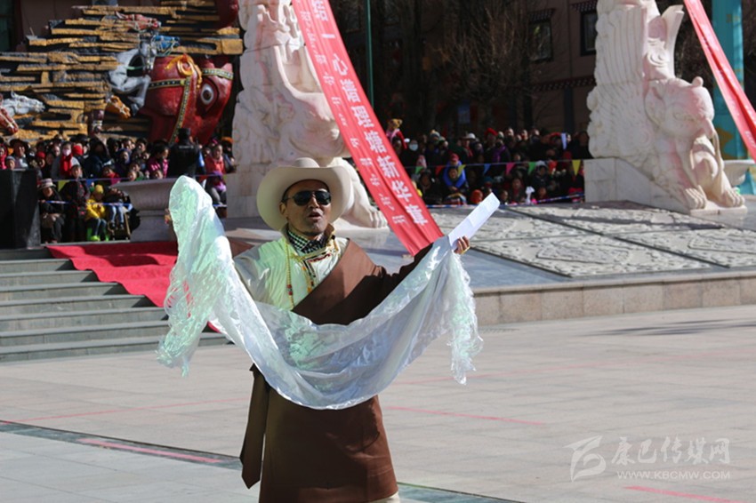 吉祥頌,藏語稱為“協(xié)巴”,是州級(jí)非物質(zhì)文化遺產(chǎn)之一。“協(xié)巴”在藏族民間生活中占有重要的地位,尤其在喜慶活動(dòng)上,是一項(xiàng)不可或缺的重要儀式。州級(jí)非物質(zhì)文化遺產(chǎn)傳承人——高城鎮(zhèn)車馬村的翁堆老人手捧潔白的哈達(dá),為觀眾表演了《協(xié)巴——中國夢、理塘夢》,展現(xiàn)了時(shí)代變遷中,“吉祥頌”這一民間藝術(shù)在思想內(nèi)容和藝術(shù)手法的創(chuàng)新之美。