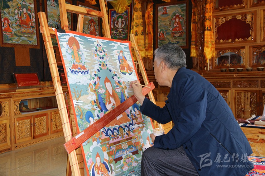 顏登澤仁,我州國家級(jí)嘎瑪噶孜唐卡畫派傳承人、省藏校教師。2017年3月,北京大學(xué)文化資源研究中心、中國非物質(zhì)文化遺產(chǎn)推廣中心組織他與另外八位唐卡大師及一位顏料大師共同完成《十明圖》唐卡創(chuàng)作。截至今日,距離他完成兩幅唐卡創(chuàng)作剛好一個(gè)月。