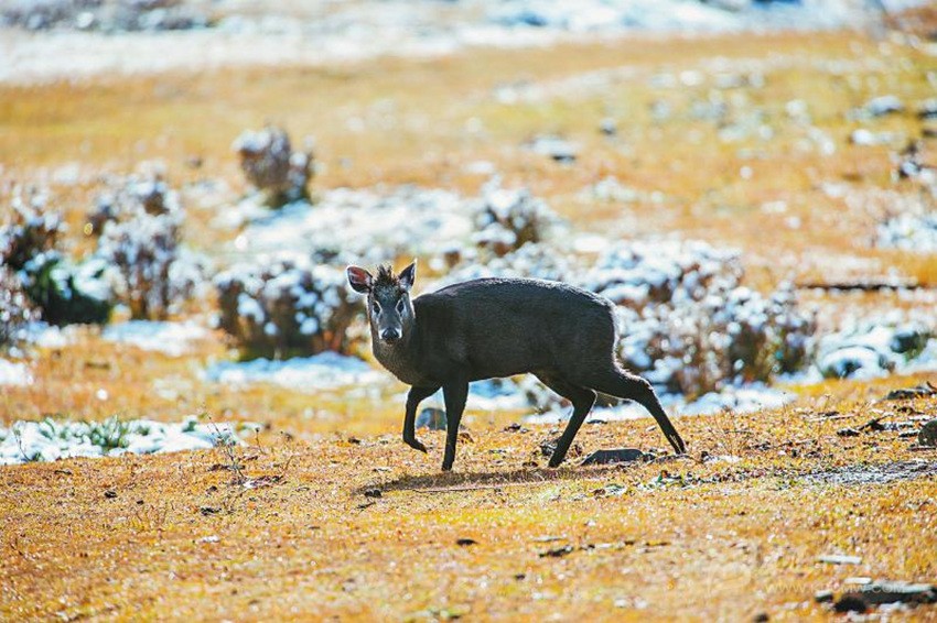 雖然沒拍到羚牛,貢嘎山卻讓他們拍下巖羊群、高原兔、毛冠鹿等大中型食草動物的行蹤,還額外“贈送”了不少意外之喜。